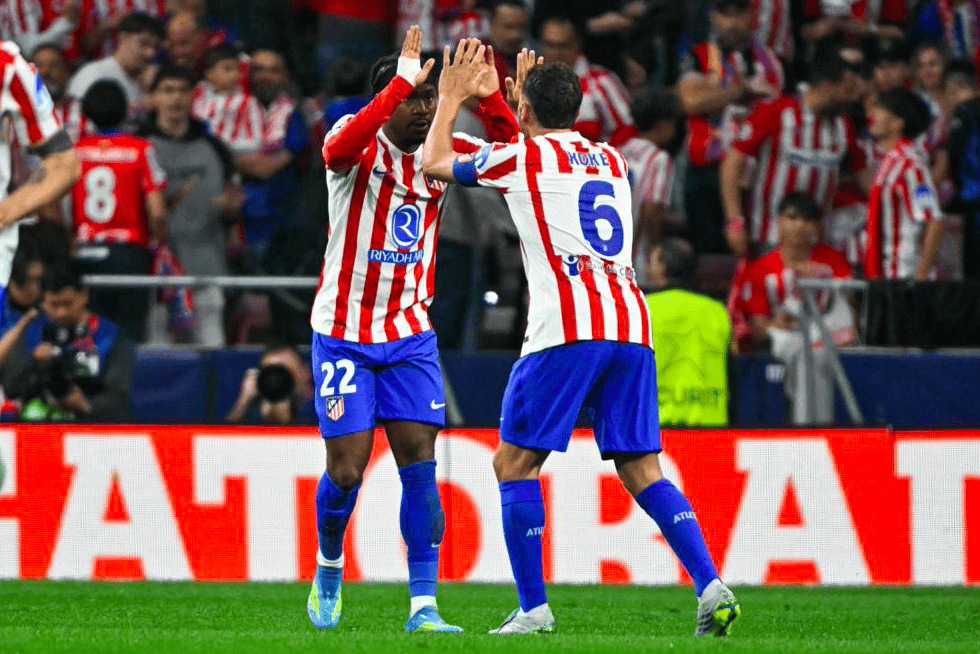 第31分钟,马竞打出经典的快速反击,格列兹曼策动进攻,略伦特传中,卢克曼抢在孔德之前,将球打进。